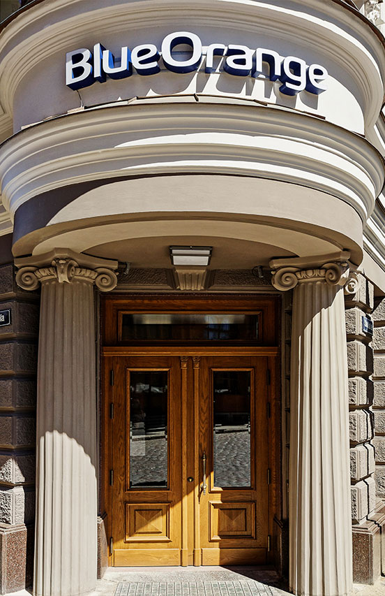 “Thanks to contributions from the building owners, this historic building in the heart of Old Riga has undergone the largest ever restoration in its centuries-long history. We are happy with the result. The building in Jēkaba 2 has not only been preserved, but also beautifully restored to its former splendour, complementing the magnificent architectural ensemble at the Dome Square. At the same time, we have managed to implement our goal – to create a modern, highly technological and comfortable bank office space behind the historical façade, housing bank employees and the BlueOrange Client Service Centre, which opened its doors last summer”, the customer’s project managers Marina Zaharova and Jurijs Jansons comment.