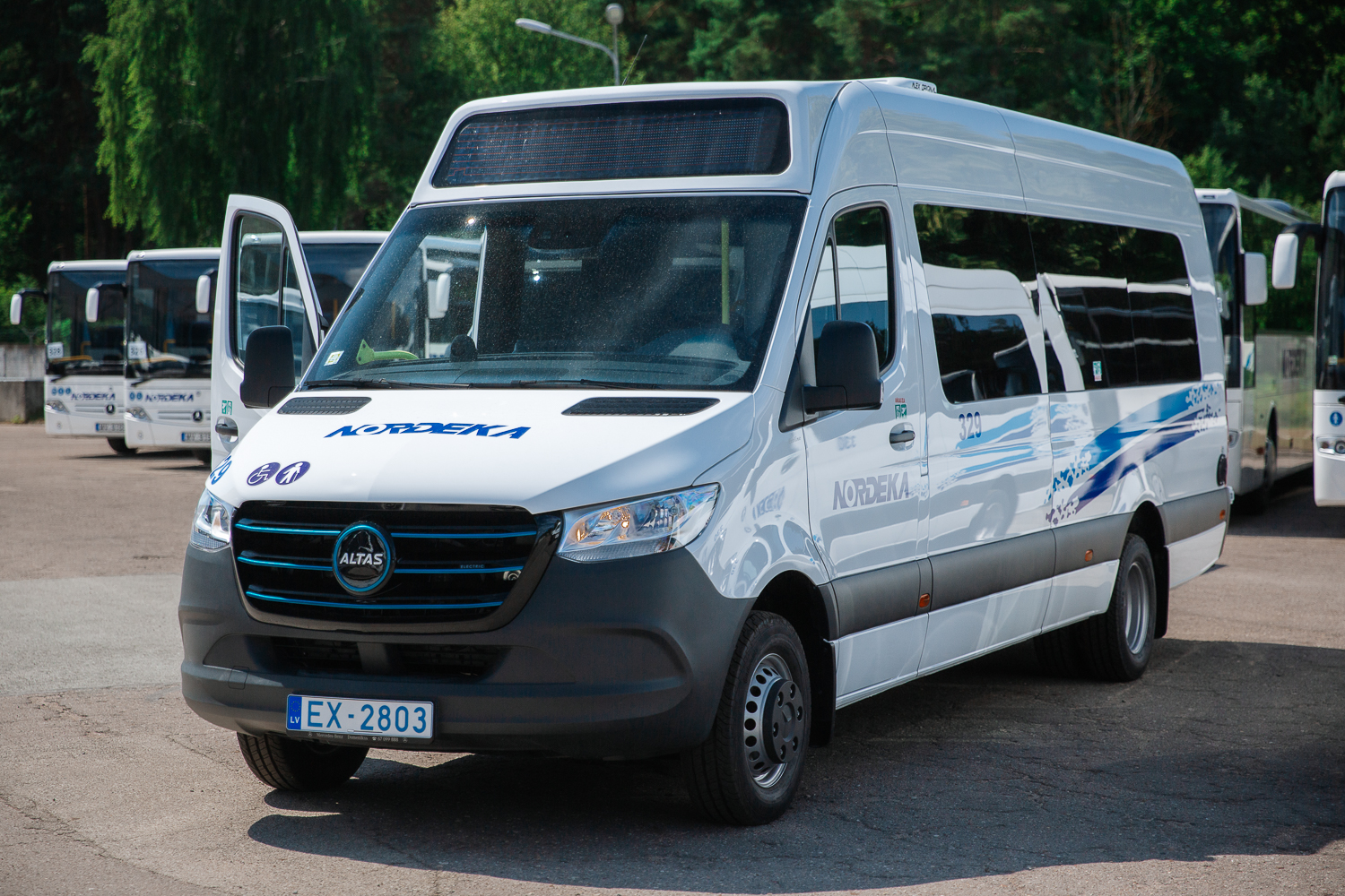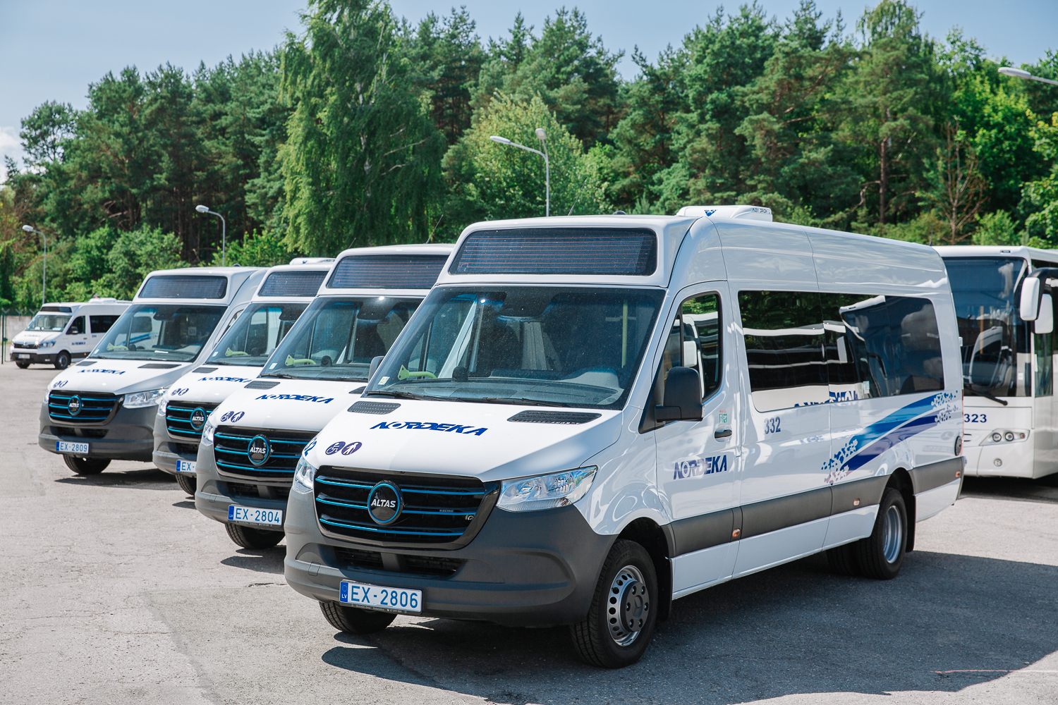 Nordeka is the first road transport operator in Latvia to launch regional carriage of passengers with Altas Novus Ecoline electric minibuses built on the basis of the Mercedes Sprinter model. The distance that electric minibuses can cover with a full charge is 200 km. A total of 6 charging stations are currently available for them in the territory of the Nordeka bus depot – in Bauska and Riga.