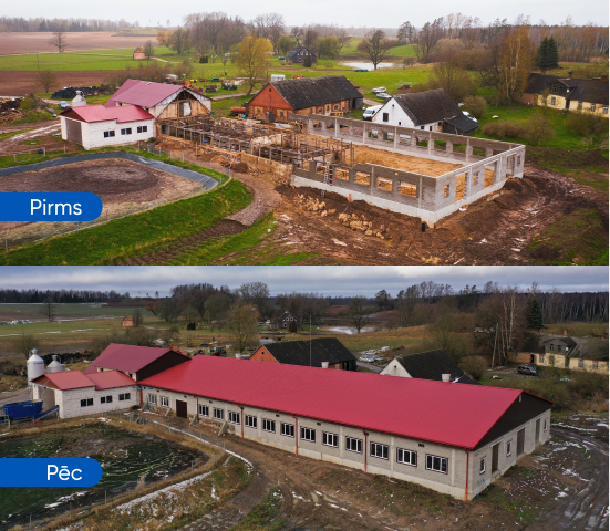 The farm “Bukas” in Dobele region has implemented a large-scale project for the development of dairy farming through attracted financing from BlueOrange Bank in the amount of EUR 674.6 thousand. The project included the reconstruction of the cowshed building, as well as the installation of modern livestock equipment, allowing full automation of herd management, milking and feeding processes.