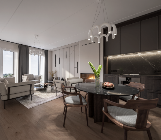 The master plan for the quarter pays special attention to green areas — valuable trees will be preserved, landscaped gardens will be created, and elegant greenery will give the impression of living in a park. The territory will be free of cars, ensuring a safe, peaceful, and visually clean environment for residents.