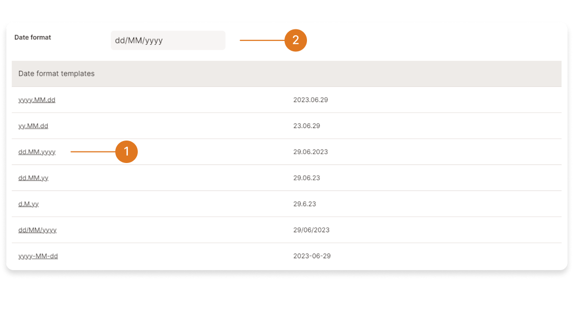 - In the section, several date format templates are available, which can be selected by clicking on the corresponding template.