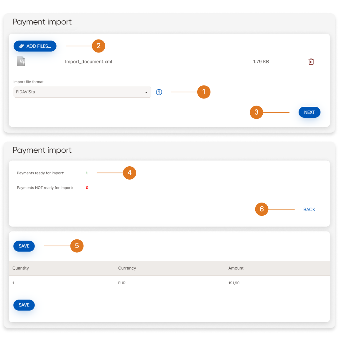 - In the payment import screen, select "FiDAViSta" as the "Import File Format" value.