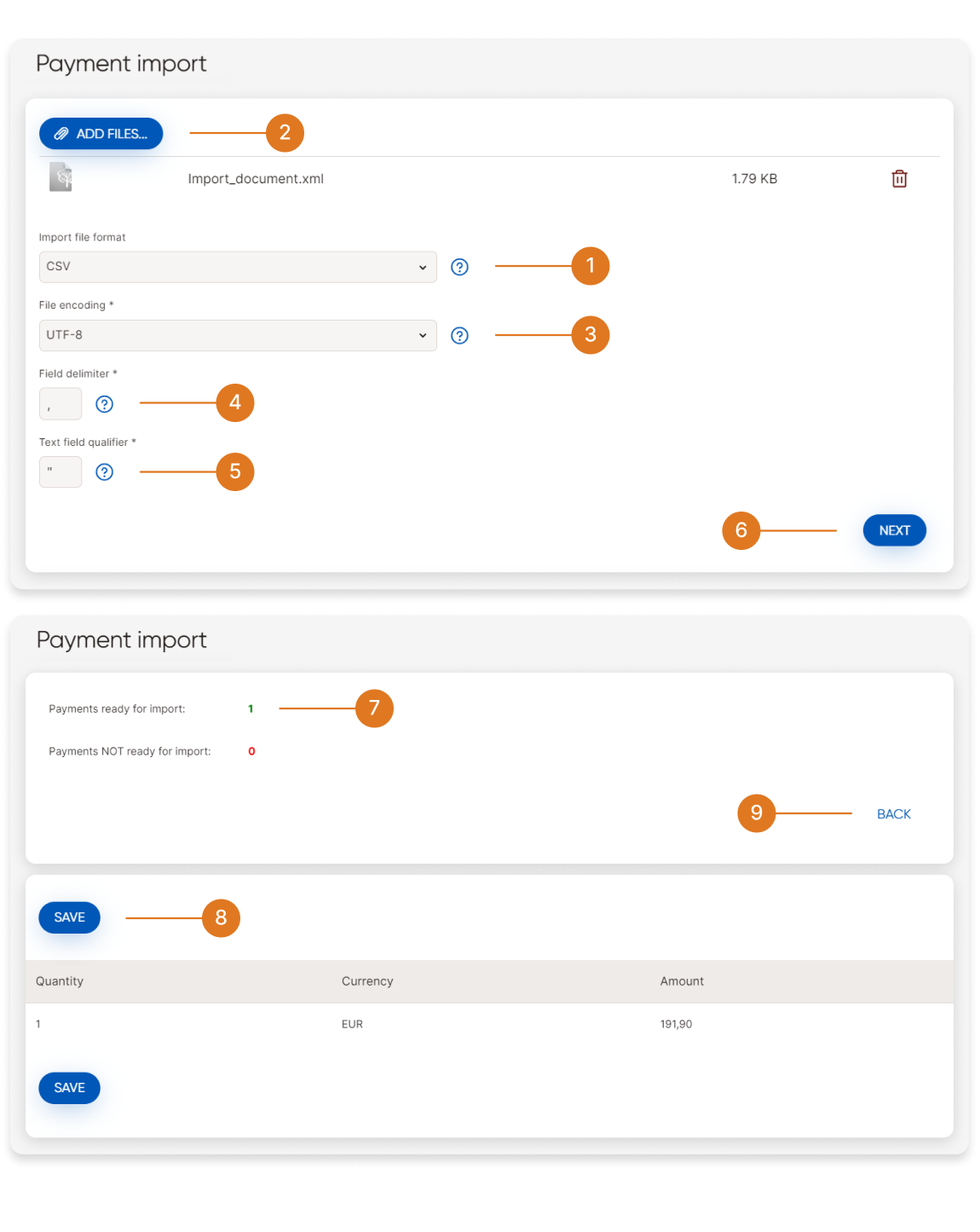 For detailed instructions on payment import, you can download the user manual of the internet banking system (page 22 - section 2.6.7).
