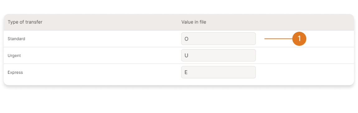 - In the "Enumeration Type" section, the urgency of the payment is specified, which can be changed in the corresponding fields in the "Value in File" column if the urgency values in the import file differ from the default values: Standard - "O"; Urgent - "U"; Express - "E".