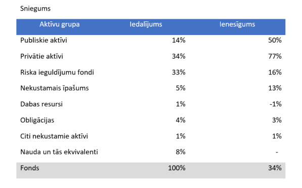 Hārvardas fonda pārskats ir diezgan necaurspīdīgs un īss, taču tajā ir sniegts šāds aktīvu grupu sadalījums un sniegums attiecīgajā periodā (no 2020.gada 30.jūnija līdz 2021.gada 30.jūnijam):