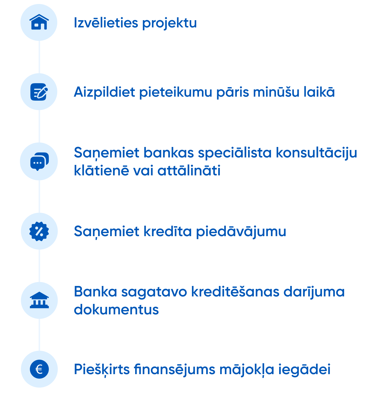 • Bankas finansējums līdz 95%, iegādājoties mājokli (līdz 90% būvniecības kredītam).