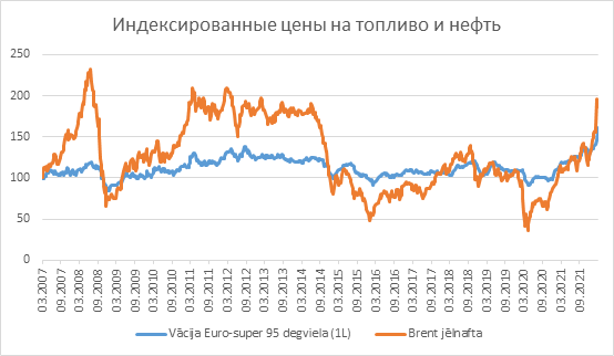 Вот наглядное сравнение цен на топливо в Латвии с ценами в других странах ЕС: