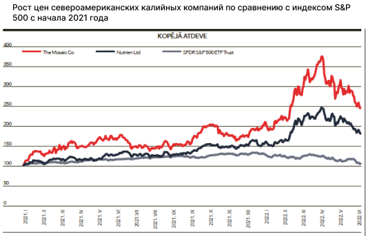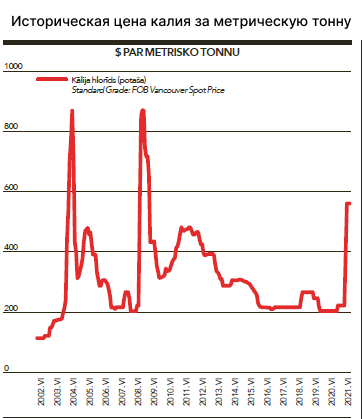 Таким образом, совокупное производство калийной соли в этих двух странах в 2020 году составило 38% мирового предложения, превысив объем производства Канады (32%). Россия и Беларусь являются малозатратными производителями и до недавнего времени довольствовались поставками больших объемов по более низким ценам. В 2020 году базирующаяся в Латвии дочерняя компания «Уралкалия», SIA “Uralkali trading”, фактически имела самый большой оборот среди всех латвийских компаний – 1,81 млрд евро, однако сообщила об убытках в размере 90,48 млн евро.