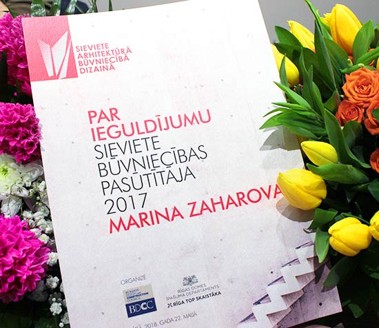 *) В то время, как интервью уже было подготовлено к публикации, мы получили приятную новость – 22 мая Марина Захарова получила специальный приз в конкурсе «Женщина в архитектуре, строительстве, дизайне». Приятную оценку руководитель проектов получила за блестяще проделанную работу, в течение пяти лет осуществив проекты по реконструкции двух зданий банка – на ул. Екаба 2 и ул. Смилшу 6.