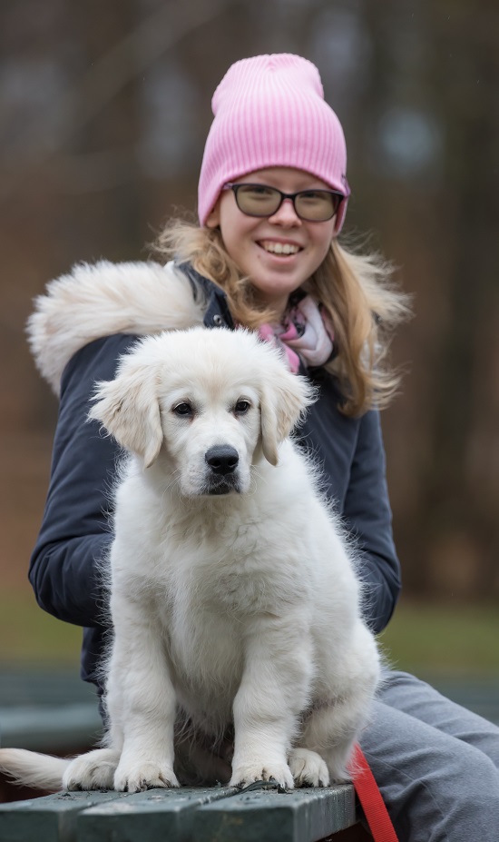 Кори прошел целый ряд проверок и тестов, прежде чем попасть к Элине. Из всех щенков, родившихся у талантливых родителей, именно он был выбран для Элины как наиболее подходящий по состоянию ее здоровья. Уже с первых месяцев жизни было ясно, что Кори ориентирован на людей и с удовольствием находится в обществе. Несмотря на бьющую через край энергию, которая так свойственна щенкам в этом возрасте, характер у него довольно спокойный и терпеливый – Кори не боится шумного окружения. Семья Элины и кинолог Инга надеются, что после прохождения обучения Кори будет сопровождать Элину, помогая ей во всех повседневных делах. На данный момент его главная задача – приносить положительные эмоции и быть верным другом, а в будущем пес сможет принимать участие в физиотерапии, помогать Элине передвигаться в помещениях школы или других публичных местах, подносить предметы, включать свет и выполнять прочие задания, которые помогут облегчить будни девочки.