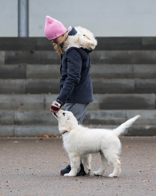Согласно правилам питомника, Элининого щенка необходимо было назвать именем на букву «К» или «Ц». Остроумное, энергичное имя Кори (сокращение от слова «Кориандр») придумала сама Элина. Поначалу было много эмоций – щенок безгранично милый, его так и хочется ласкать и баловать. Но в будущем Кори предстоит выполнять серьезные обязанности собаки-ассистента, поэтому с ним необходимо постоянно проводить тренировки, как с участием кинолога Инги Земите, так и самостоятельно. Очень важно, чтобы авторитетом для Кори стала сама Элина, и она к этой задаче подходит с большой ответственностью. Как говорит кинолог, задаваемая домашняя работа с Кори выполняется на все 100 процентов. Благодаря поддержке фонда «BlueOrange Charity» и инициативе кинолога, еженедельные занятия проходят в Лиепупе, в доме Элины, в привычной для нее среде, где девочка проводит свои будни.