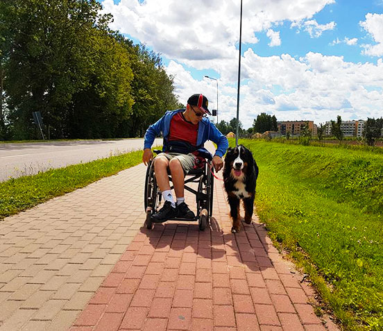 Несколько месяцев назад у Роберта появился верный друг – десятимесячная бернская овчарка Клеопатра, которой предстоит взять на себя часть забот в обыденной жизни Роберта. Клео старательно овладевает необходимыми навыками под руководством высококвалифицированного кинолога-канистерапевта. При финансовой поддержке благотворительного фонда «BlueOrange Charity» уже осуществляется годичная программа обучения собаки-проводника для восьмилетней рижанки Катрины, но в Латвии есть и другие дети с особыми потребностями, которые мечтают о своем друге и помощнике. Родители этих детей очень надеются получить такую же поддержку.
